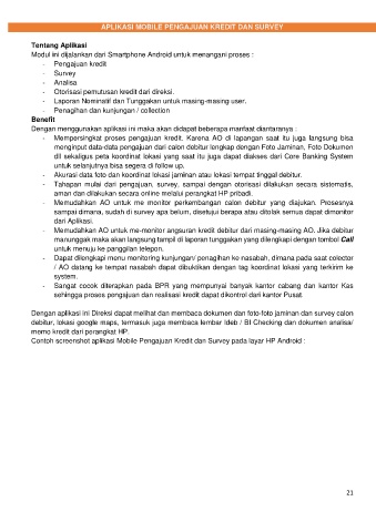 Dengan aplikasi ini Direksi dapat melihat dan membaca dokumen dan foto-foto jaminan dan survey calon